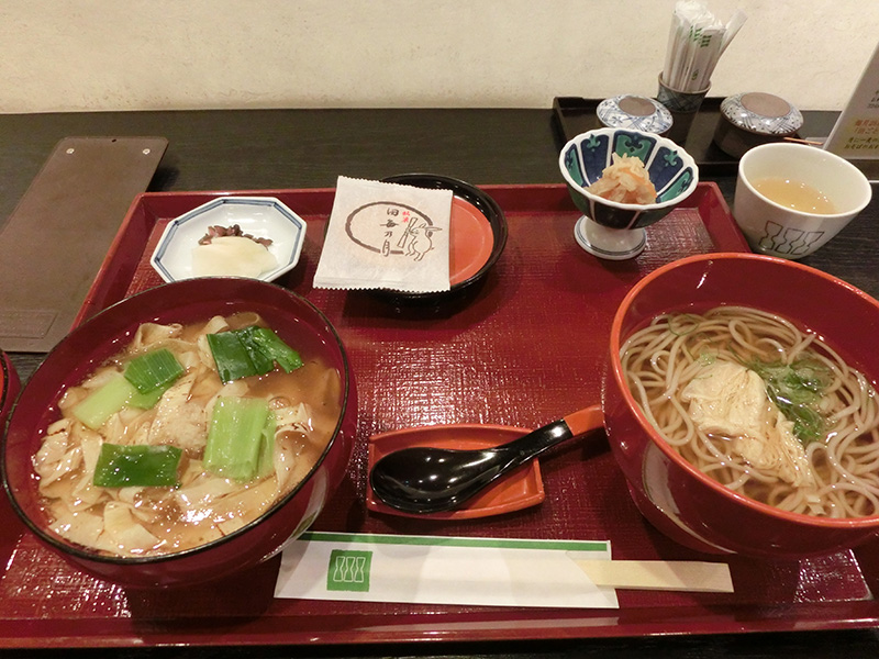新幹線の時間調整に駅ビル内で京都っぽい夕食をと思いこちらへ。色々食べたかったのでセットメニューを頼んだところ、お蕎麦と湯葉の餡かけ丼が通常サイズ(?)でセットになっていてかなりボリュームがありました。お出しの味がしっかりしていて男性の方も満足できると思います。