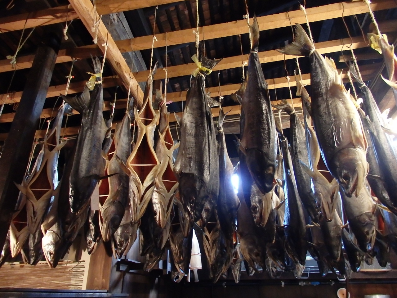 店内奥の鮭がつるされている様子は圧巻。一見の価値ありです。