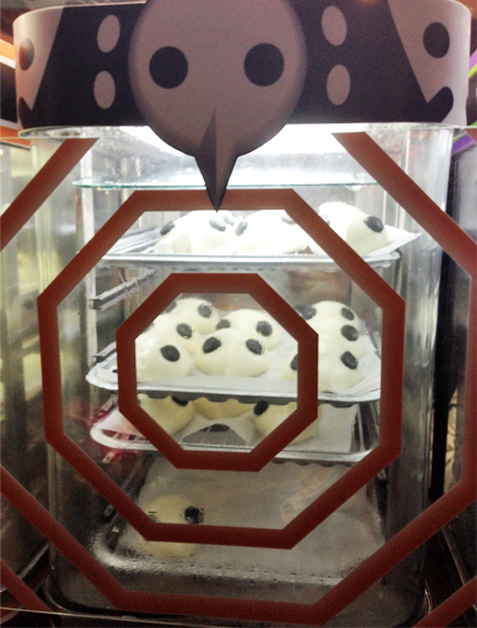 エヴァンゲリオンとコラボしたフード「使徒まん」です。アトラクション「エヴァンゲリオン・ザ・リアル4-D」近くのフードカートで購入できます。