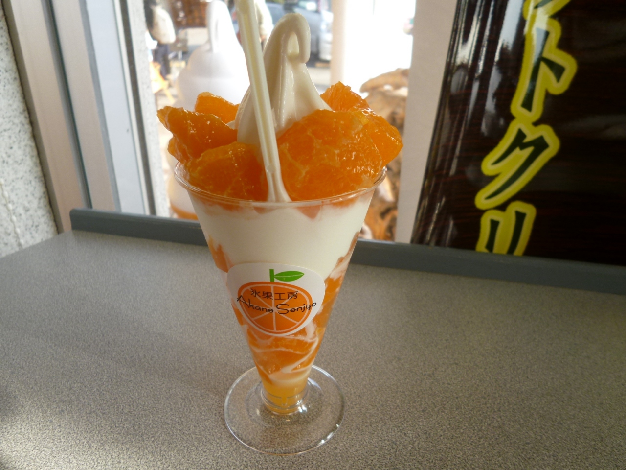 和歌山と言えば・・・みかん!と言うことで、みかんもりもりソフトを注文。