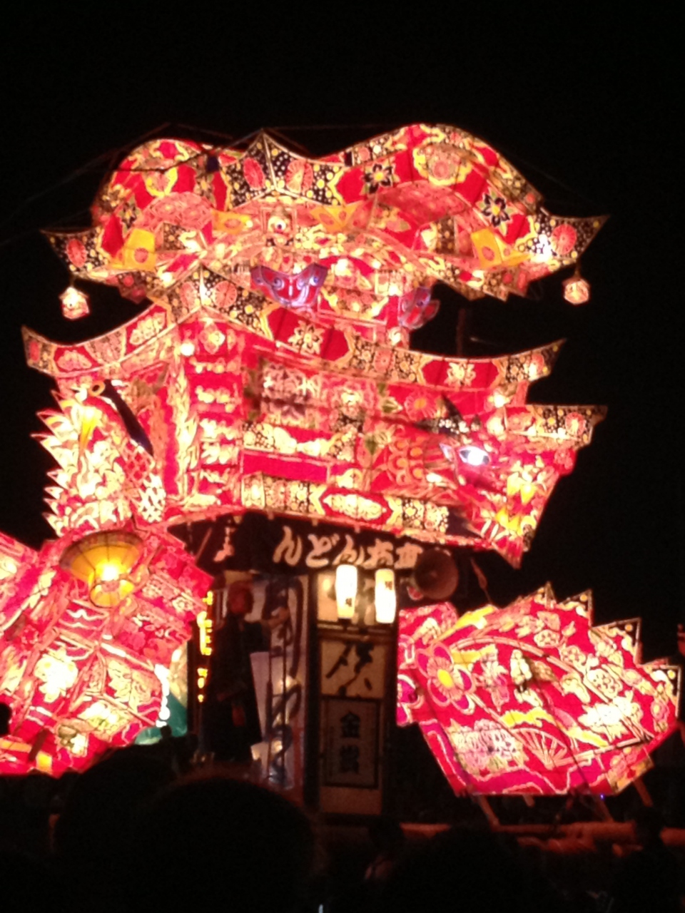 とても良かったので次の年、義母も連れて観に行きました。見どころは町内を周ったあとの山車と山車とのぶつかり合いです。「よいやさー」という掛け声で山車が動き、ぶつかるまでアドレナリンが出っ放しでした。どこか破損したのではないかと、ハラハラしながら観ていました。山車はJA、学校など組織ごとに出ていて、手作り感がいっぱいです。祭りを町全体で盛り上げているのが伝わってきて、また機会があれば観に行きたいと思いました。