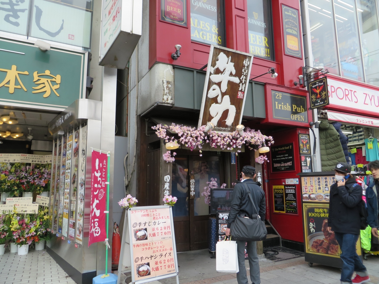 昔い懐かしい素朴な牛丼を楽しめました。定番の東京牛丼は600円。間口は狭くて一瞬運はいるのをためらいましたが、中は意外と奥行きがありました。生のにんにくをお店の器具で自分の好きにつぶして食べるというサービスも魅力です。店内は、昭和の歌謡曲が流れていて、それもよい雰囲気でした。