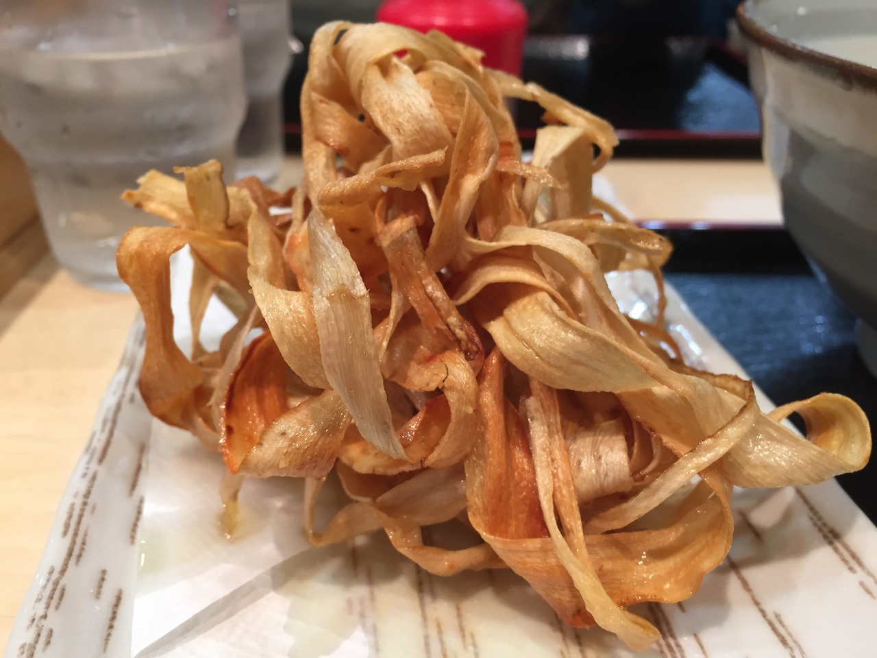 新天町の商店街の中にある、お店。たまたま見かけたので入る。チェーンのお店ではなく、独立店。博多でのうどんは、醤油系ではなく、ダシ系。ゴボウ天が入ったものが定番のうどん。「助六」というのを頼んでみたら、細切りゴボウを揚げたものがでてきた。お昼や午後には、働く人々が昼食をとりに、次々と入ってくる。