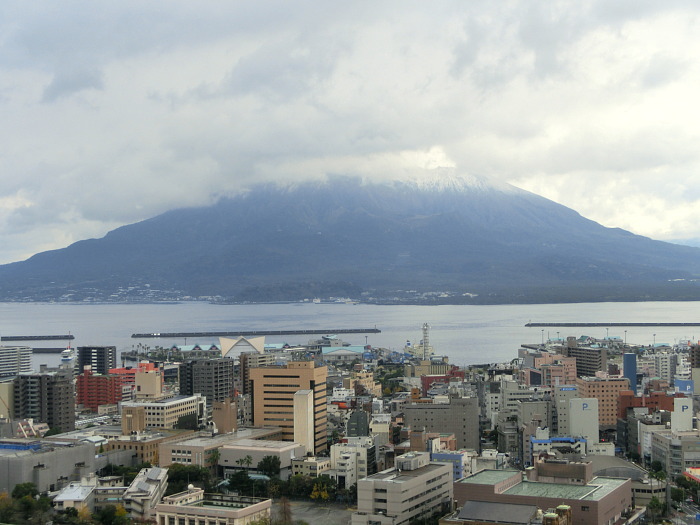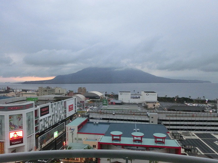 宿泊したホテルから見た桜島は雲がかかっていたし、城山展望台から見た桜島も雲がかかっていました。