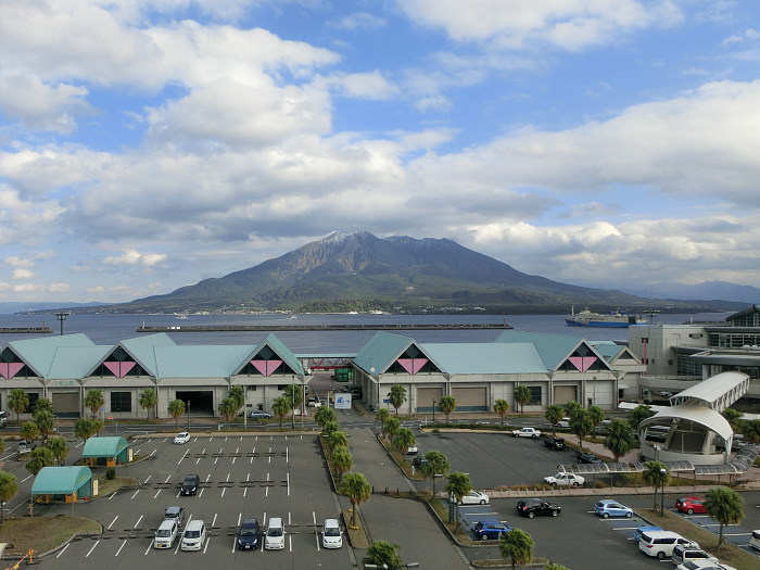 午後に行った、いおワールド かごしま水族館の展望ホールで、やっと青空が見え始め、くっきりとした桜島を見る事ができました。