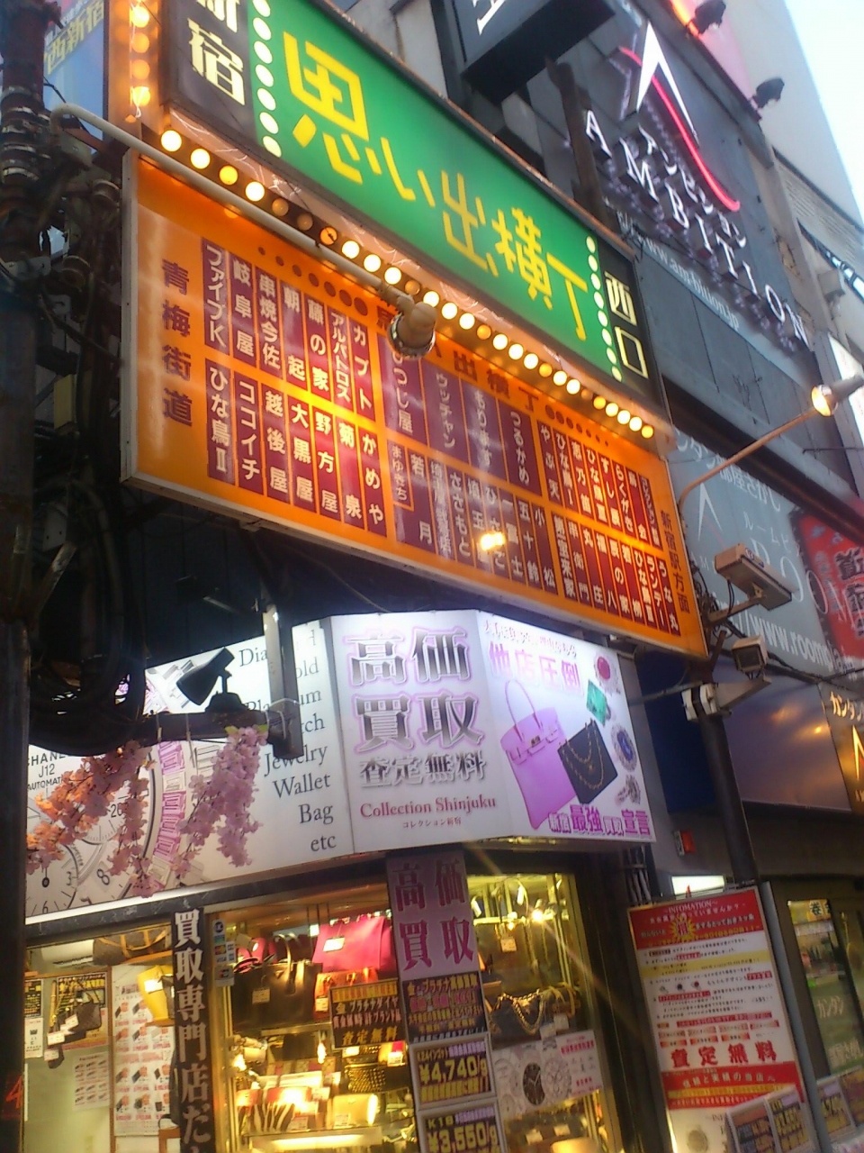 新宿駅西口を出て、青梅街道沿いに小田急デパートの前の下り坂を下って行って、右にはいるとあります。狭い通りの左右に飲食店が並ぶディープな飲食店街です。狭くて小さな焼き鳥屋や定食屋などが並んでいて、酔っ払った中年のサラリーマンがたくさんいます。