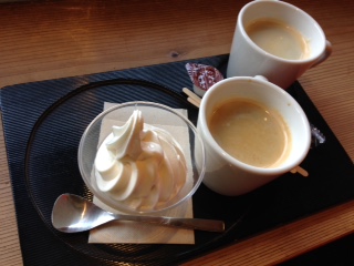 宮ノ下散策で休憩がてら訪れたカフェ。宮ノ下駅からすぐの所にまず足湯の入って珈琲を飲んでいる人ごみを発見。その先に「NARAYA CAFE」のカウンターがあります。軽食・ドリンクは足湯の場所・CAFE内1F・2Fにもあり、好きな所で楽しめます。今回は2Fで外を見ながら珈琲・ならやん・ソフトクリームminiを選択。「ならやん」とは自分でつくる最中ですが、中にいれるあんが4種類から選べ、今回はごまあんを選択。ソフトも濃厚で食べごたえ十分。散策につかれて時におすすめな場所です