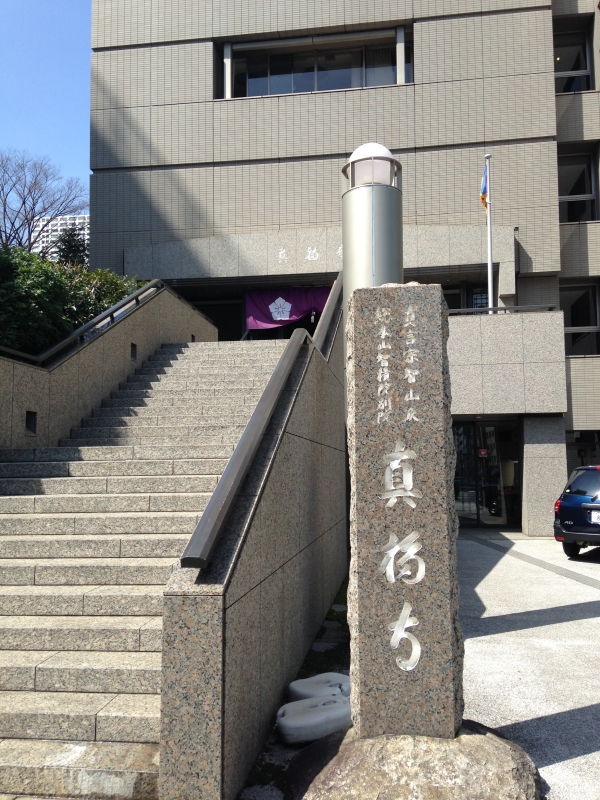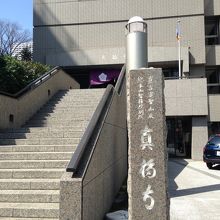 しかしその裏手にも別の入口があり、この寺の寺務所になっています。本堂への入口は外階段を2階に上がる形ですが、隣のオフィスビルと併せて、この寺の所有物。