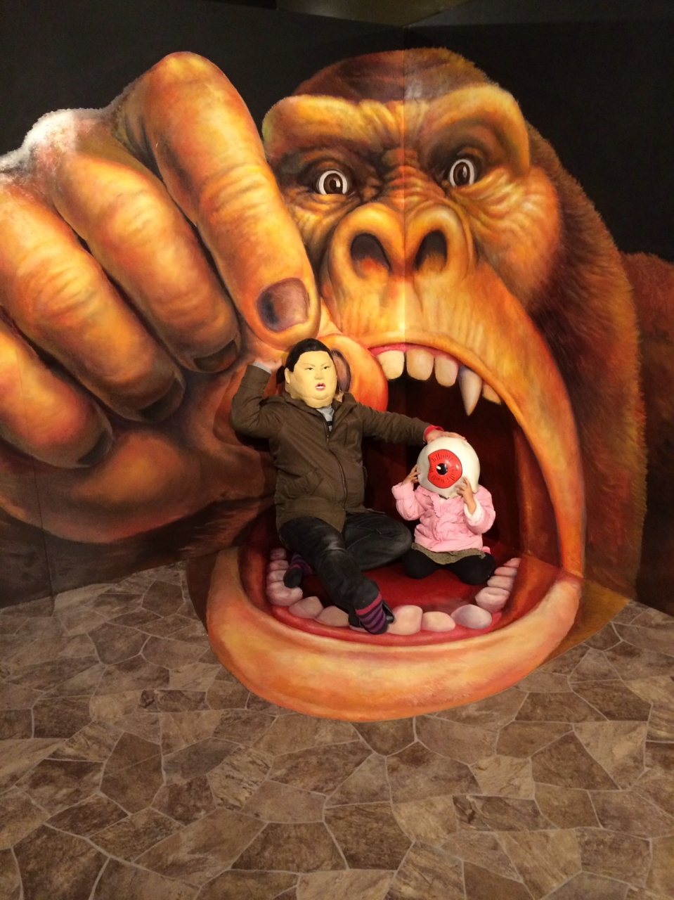 目の錯覚を生かして動くように見える絵や浮き出て見える絵、入る前は怖がっていた3歳の娘も足を一歩踏み入れた途端おおはしゃぎ!