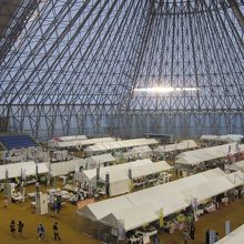 但馬ドームは神鍋高原の中にあります。自然の中にドドーンっていう感じです。但馬ドームでイベントがあり、グランドに沢山の出店がありました。ドームの屋根は開閉式で、広々とした感じでした。近くに植村直己記念館もあります。