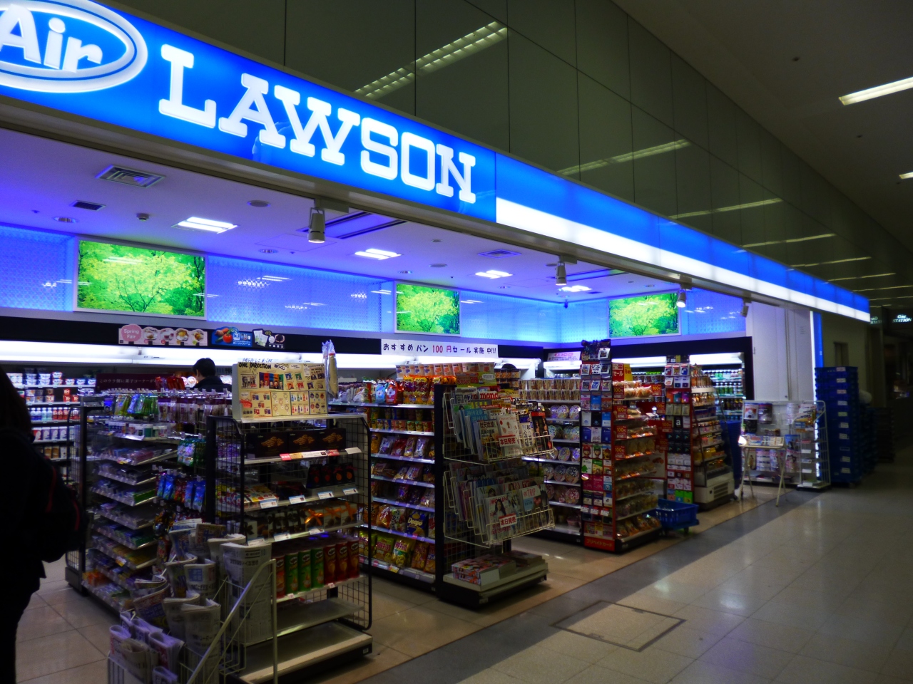 羽田空港第一旅客ターミナルビルのモノレール駅「羽田空港第一ビル駅」南口改札を出て左手に進んだところにあるローソンです。24時間営業ではなく午前5時半から午後11時までですが、コンビニエンスストアがあると安心します。一般のお店の品ぞろえに加えて、お土産などもおいていました。