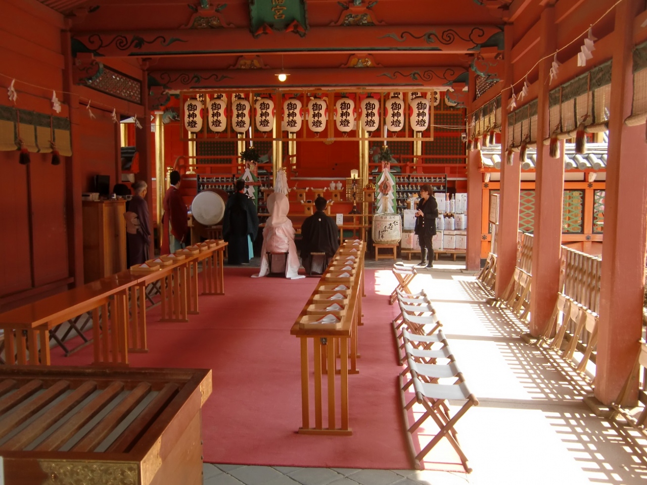 社殿内ではちょうど結婚式があげられており良い雰囲気です。