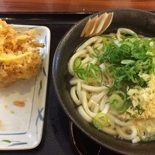 きつねうどんの大盛(430円)とかき揚げをもらいました。お代は汁はほとんど色がなく、かなり薄味です。麺にはあまりエッジがありません。どっちかというとはなまるうどんに近い味のようですが、僕は丸亀製麺の方が好みです。