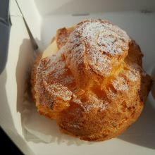 シュー生地はやわらかめで中のクリームは甘さ控えめでバランスよく美味しかったです。