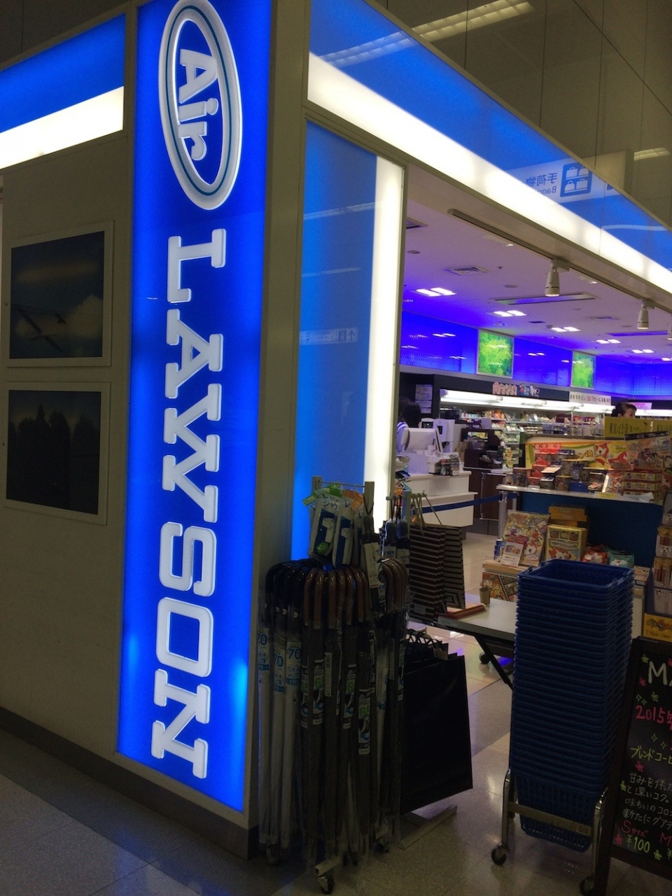 ローソンは、郵便局と組んだりといろいろな展開をしていますが、空港にあるからAirローソンというのは受けました。外観もちょっとこっていますが、取り扱い商品は基本的なものとおみやげ。クレジットカードも使えますし、案外使えますよ。