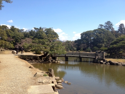大きな池を橋や島を渡りながら歩くと様々に景色が変わります。