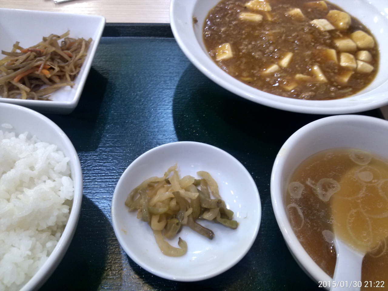 今回は、麻婆豆腐定食(ちょっと野菜が足りないかな。。。)