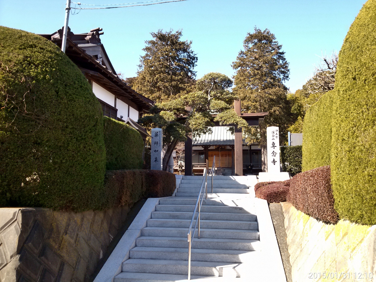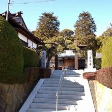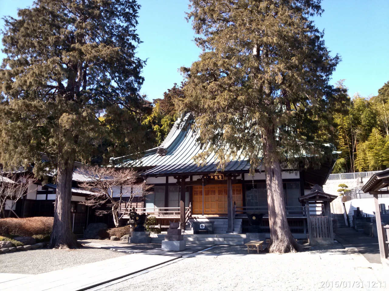 このお寺は鎌倉時代から目の前の川で負傷した武将が、目を洗ったら、治ったという言い伝えのあるお寺で、深谷目薬師」と呼ばれる薬師如来があり、目の病気に聞くといわれています。また境内に通じる赤い橋が特徴のお寺でもあります。