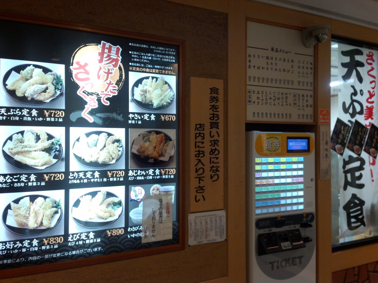 お店の外にメニューの写真と食券自販機があり、食券を購入して入ります。