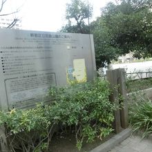 の入口に三遊亭円生の旧居があったことを伝える案内板がたっている。