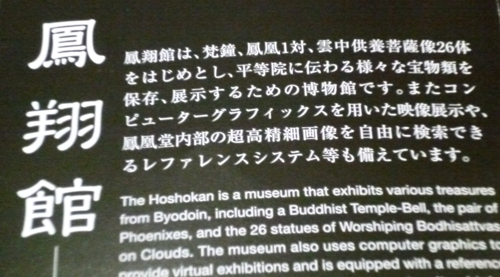 平等院の全てがわかる鳳翔館も合わせて来館しました。近代と日本建築の融合された建物で庇(ひさし)の空間を大きくとっていて庭園とのバランスも良くオシャレです。館内には国宝・重要文化財のお宝が所蔵されています。釣鐘(梵鐘)は鳳凰堂南側の園池のほとりに建つ鐘楼にあったものが展示されていて平安時代から続く「姿の平等院鐘・声の園城寺鐘・勢の東大寺鐘」の天下の三名鐘の1つとしても有名なものだそうです。確かに外装の模様も素晴らしく綺麗です。是非ゆっくり鑑賞しましょう。
