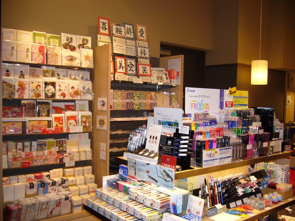 いつもと違った感覚の伊東屋も羽田空港国際線ターミナル(EDO MARKET PLACE)にあって、何か新しい発見はあるか覗いてみました。出入り口は2ヶ所あって間口は広く和空間の店内を見渡せるようになっていて贅沢な文具店になっています。女性が好むような柄・紙質ともに納得いく鮮やかに染色した千代紙は日本の伝統紙で、ブックカバーを作ったり色々な用途に使えるので知人へのお土産にも喜ばれる一品。とても楽しいで、ぜひ覘いてみてくださいね。