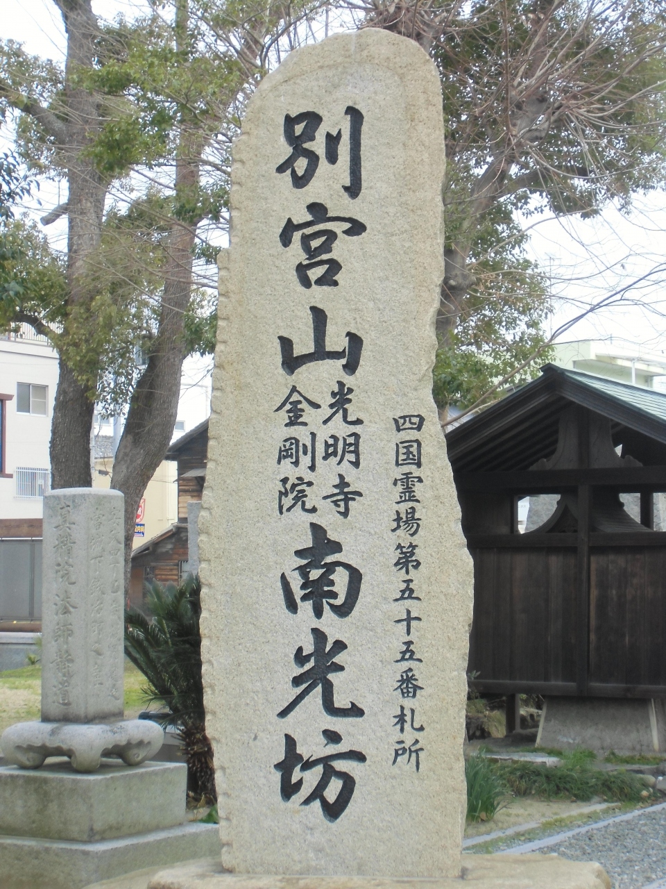 四国巡礼第五十五番札所、山門には四天王(持国天、増長天、広目天、多聞天)像があります。もとは大三島に鎮座する大山祇神社の「供僧寺」のうちの一坊として造立された。納経所には書家・川村驥山が遍路の際に使った菅笠があります。