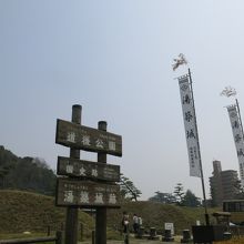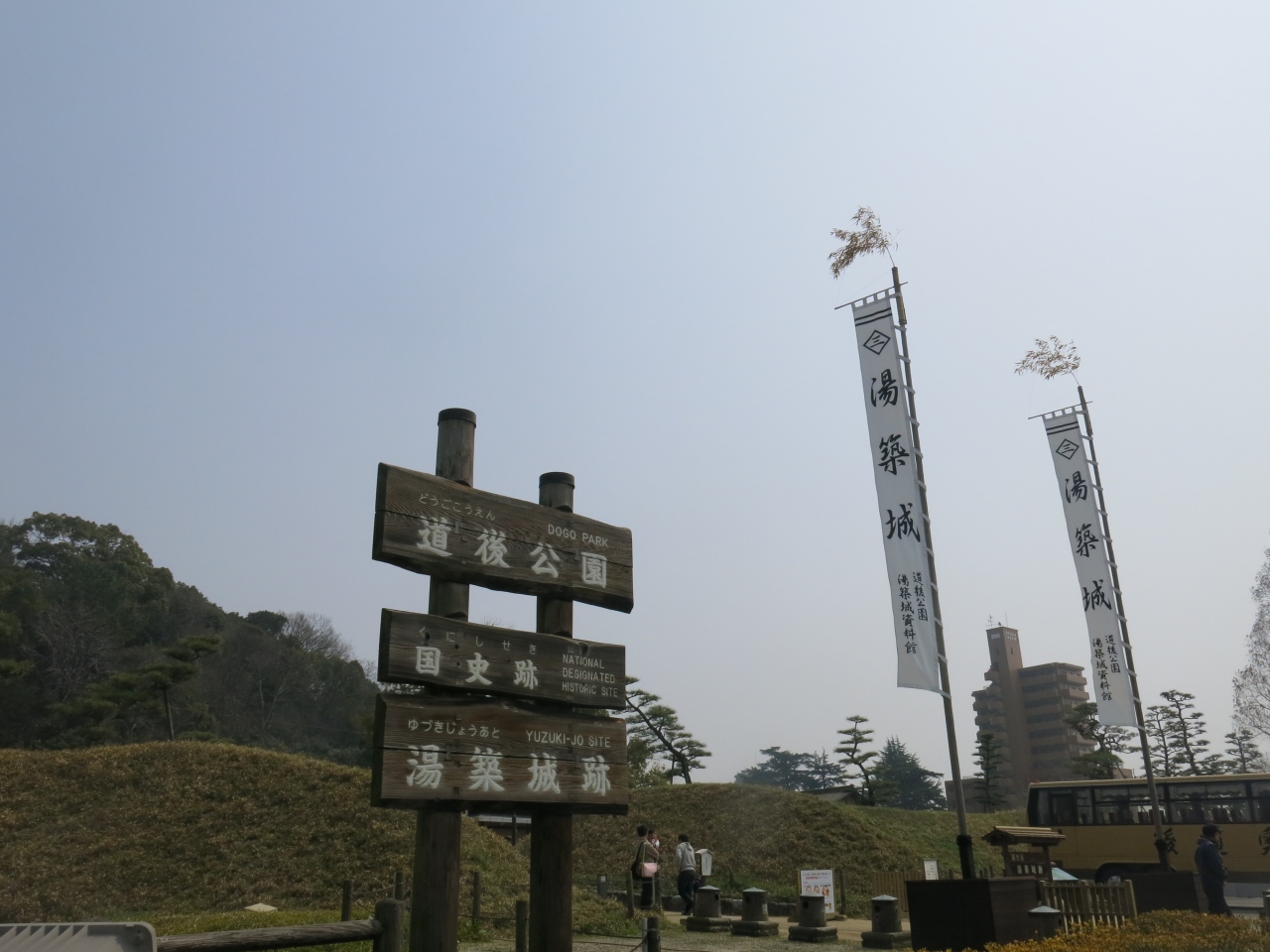 湯築城の城址が公園として整備されています。お堀や武家屋敷は古地図をもとに復元されたもののようですが、城山を利用した展望台からは松山城や遠く瀬戸内海まで見晴らすことができました。とはいっても小さい公園なので、短時間で散策できます。