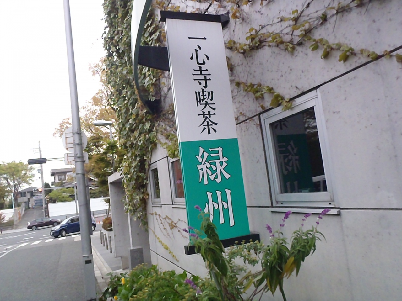 一心寺のお休み処としてのかやくご飯などの軽食やぜんざいやコーヒーなどのカフェメニューなどコンクリート打ちっぱなしの外壁にツタが絡まり店内は和風で赤を基調とした椅子でとても癒される雰囲気の喫茶店です。