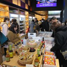 北陸新幹線が3月に開通することもあり、沢山の人が訪れていました。B1Fから2Fの3フロアあり、B1Fでは俵屋のみずあめ等の和菓子、酒、1Fは特産品、2Fは工芸品が売られ、カフェが併設されています。この店では金沢の庶民の鍋、とり野菜みそが買えます。シンプルな鍋で野菜と鳥だけの鍋ですが、とても美味しいですよ。