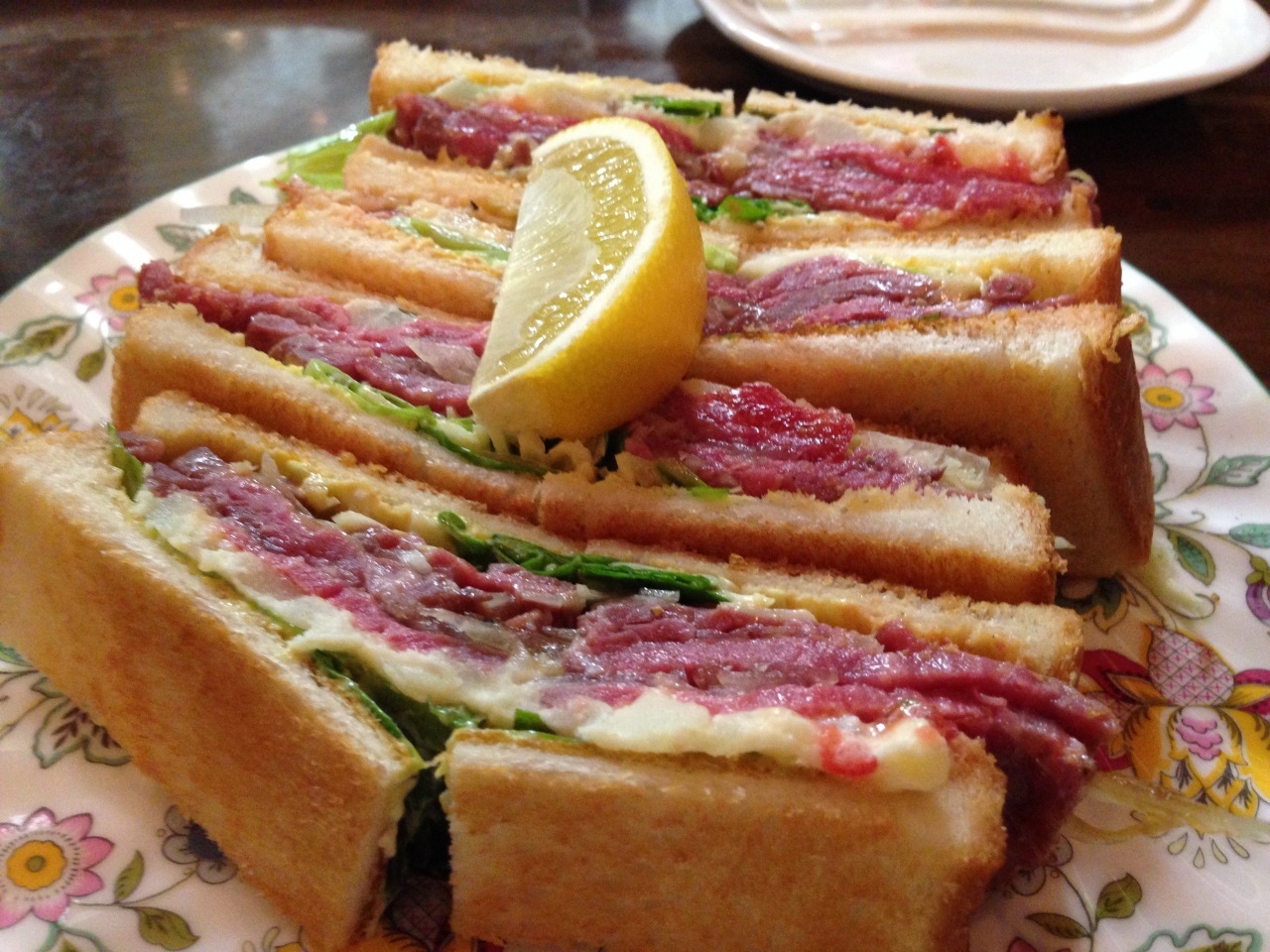 お目当てのローストビーフサンド700円はフィンガーサンドタイプの小振りサイズで、量的にもちょうど良い感じでした。