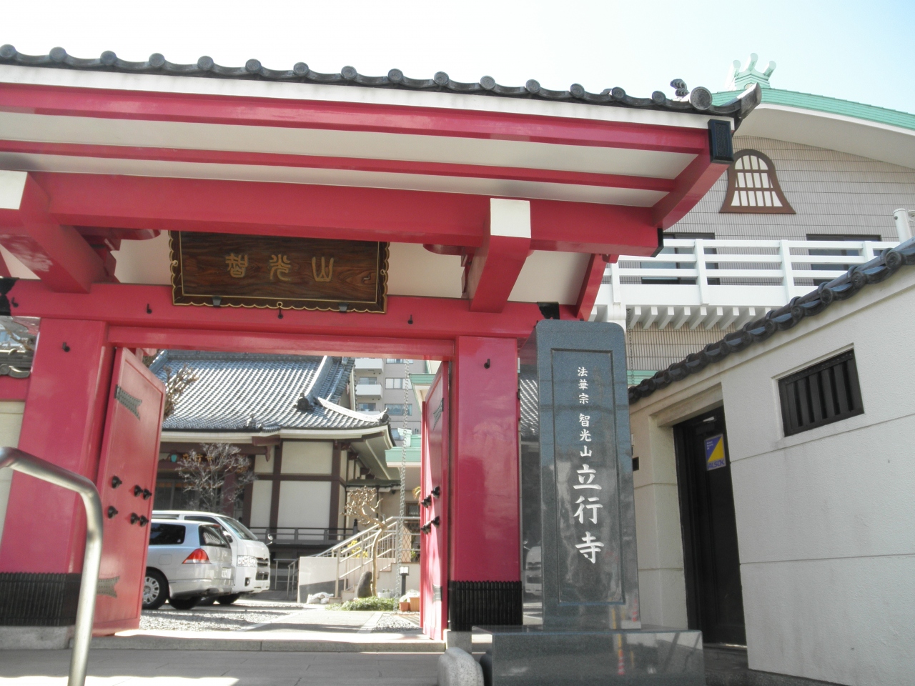 白金高輪駅から恵比寿駅へと向う通り沿いを数分行くと左手にちょっと入ったところに立行寺の赤色の山門が見えました。山門のところに大きく書かれているように、ここには大久保彦左衛門の墓や架空の人物とされる一心太助の墓があることで有名です。