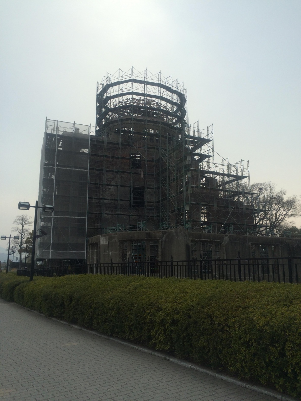 平和記念公園から橋を渡ってすぐの所にあります。被爆後70年で劣化が激しいらしく、修理中でした。
