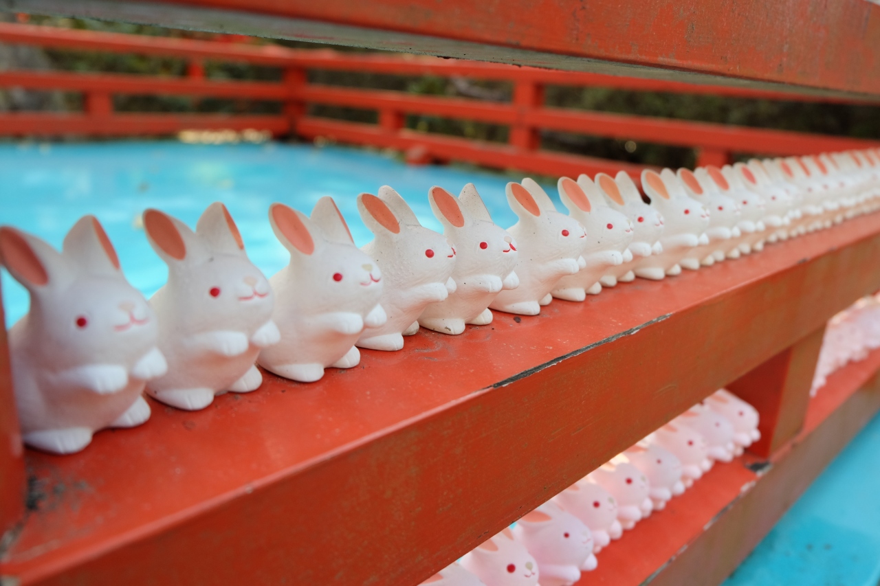 スサノオノミコトやクシイナダヒメノミコトが祀られているそうで、このご祭神二注が子だくさんだったことや、うさぎも多産ということで、子授けや安産で有名だそうです。他にも、縁結びや厄除けなどの御利益も。平日の午後に行きましたが、境内はとても静かでした。狛うさぎをはじめ、うさぎがいっぱいでとてもかわいいです。うさぎおみくじはついついほしくなってしまいます。