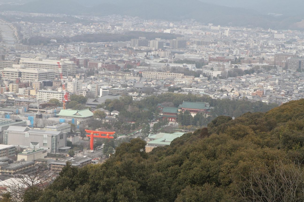 ここには、清水寺の大舞台よりも広い展望スペースがあって、京都御所、平安神宮、東山連山など、京都市内の大パノラマを楽しめました。
