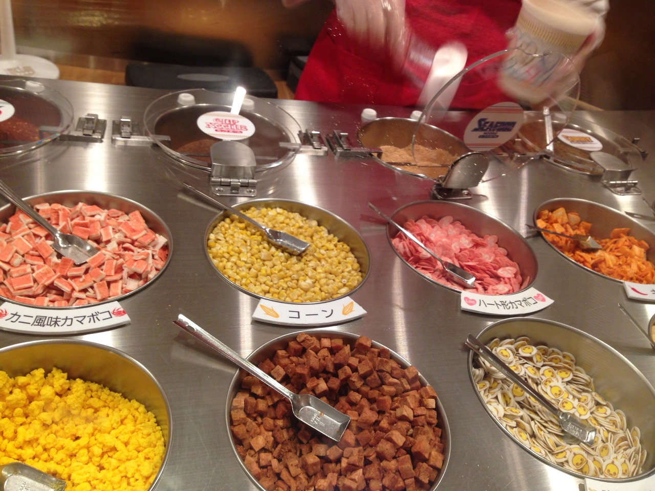色々な国の麺メニューを頂けるエリアは、そんなスタイリッシュな雰囲気とうって変わってまるでアジアの屋台市のような雰囲気。レトロ感もあり、ちょっと頼りないイスやベンチで頂くヌードル、とても美味しかったです。