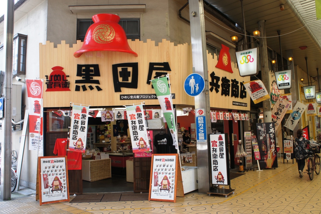 話はちょっと古くなりますが、NHK大河ドラマ黒田官兵衛が人気を集めていた2014年6月に訪れた姫路の商店街で「あるある」と思ったのが黒田官兵衛商店でした。派手な看板ですが、公的なプロジェクトの一環として作られたようで、お土産物やキャラクターグッズなどがたくさん並んでました。さて問題はその後。今や大河ドラマといえば幕末の萩を描いた「花燃ゆ」。ドラマが終わるとあっという間に寂しくなってしまうものですがいかがでしょう。今年は平成の大修理が終わった姫路城天守内部の一般公開が始まり、昨年を上回る観光客が予想されるだけに、すごくなっているのかもしれません。