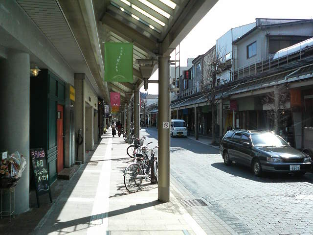 個性的なたたずまいの個人商店が並んでいるのですが、川の東側の江戸の頃を思わせる町並みと対照的に、こちらはやや現代っぽい感じなのが面白いです。