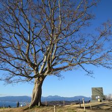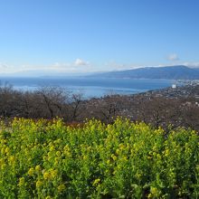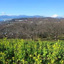 頂上につくと芝生が広がり一本の枝ぶりが見事な木があり、その先に進むと菜の花があり、奥に富士山と相模湾の絶景が望めます。上るのは大変ですが、ともかく素晴らしい景色です。富士山を見るならば雲が出にくいの午前中がお奨めです。午後になると雲が湧きやすくなります。