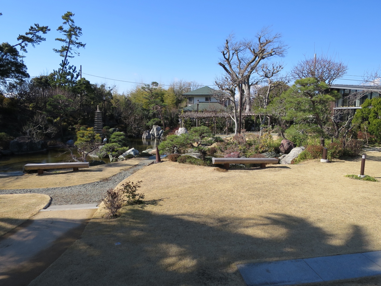 大磯にあった旧三井財閥本家の別荘地跡に作られた広い公園です。公園内の小高い山の頂上にある展望台からは富士山、相模湾が見渡せます。しかし、景色の良さでは吾妻山公園の足元にも及びません。国道1号線を挟んで反対側には吉田茂邸がありましたが、焼失し現在は再建途中ですが庭園は見事です。