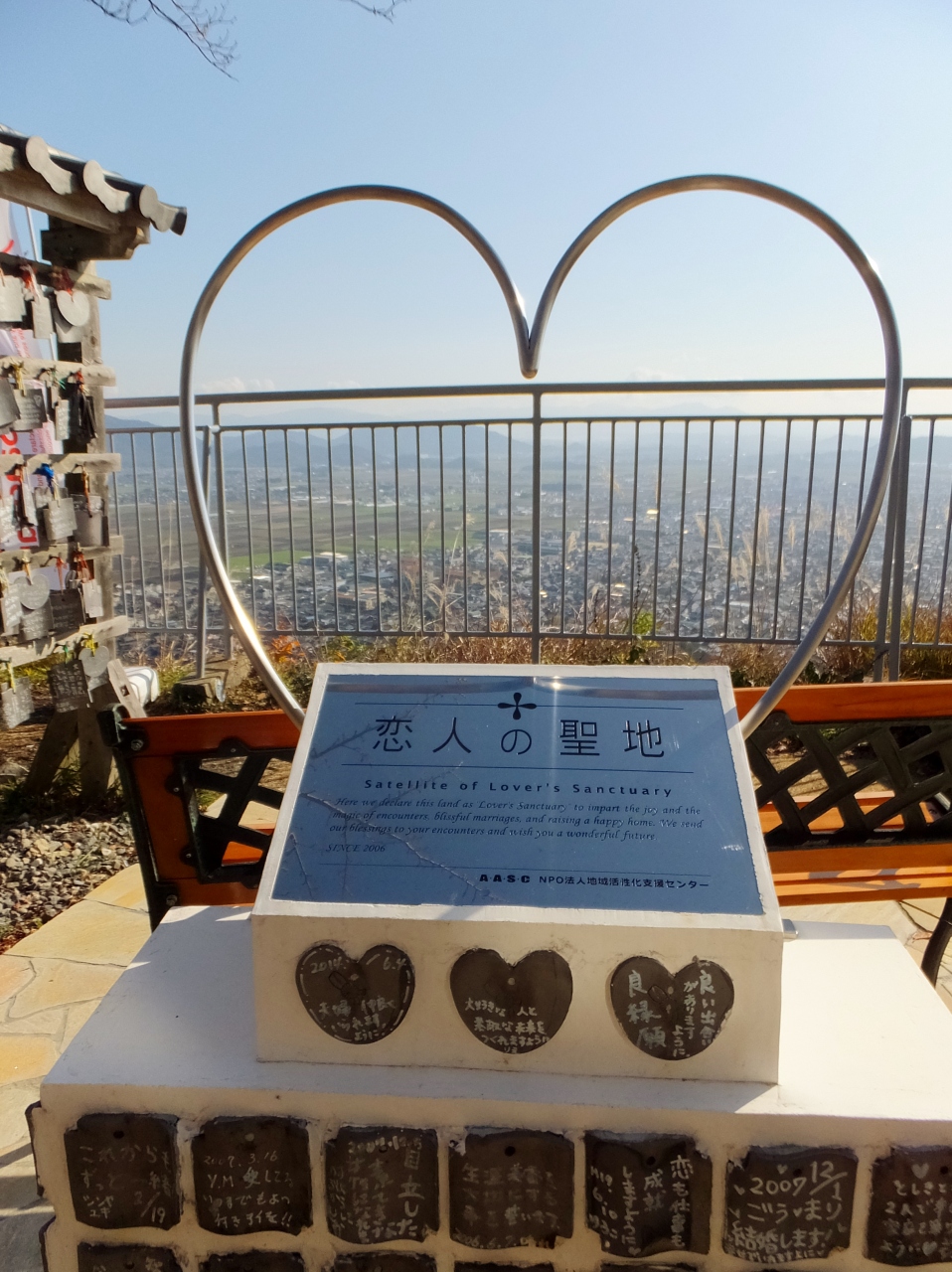 縁結びのパワースポットで、プロポーズにふさわしいロマンティックなスポットとして「恋人の聖地サテライト」に認定されて撮影スポットがあり、カメラを置く台がありました。