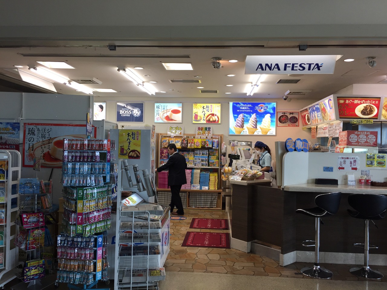 お店の看板をみたら、沖縄のアイスクリームのブルーシールの看板がありましたので、248円のカップを購入しました。しかし、沖縄ならではのアイスと言うより、普通のアイスで期待外れでした。また関西空港にもお店があり、あまり珍しいアイスでもないと気づきました。
