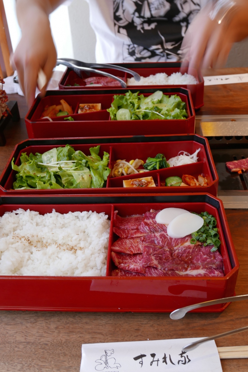 セットにはナムルやサラダもついてきます。御重に入ってきていっぺんに運ばれてきます。