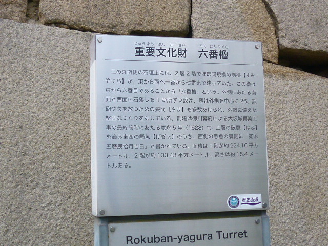 今日は大阪城の梅林を観て公園をぐるーと周って大手門にきました。いつ見ても立派な大阪城ですが、周囲にはそれを守る多くの櫓が造られました。しかしその姿も現在は少なくなっています。ここ大手門付近には、多聞櫓や千貫櫓、そしてこの「六番櫓」が観れます。場内から観る姿より、大手門の外右側から観る、濠と石垣の上に建つ姿がずーと良いですね。これぞ大阪城です。