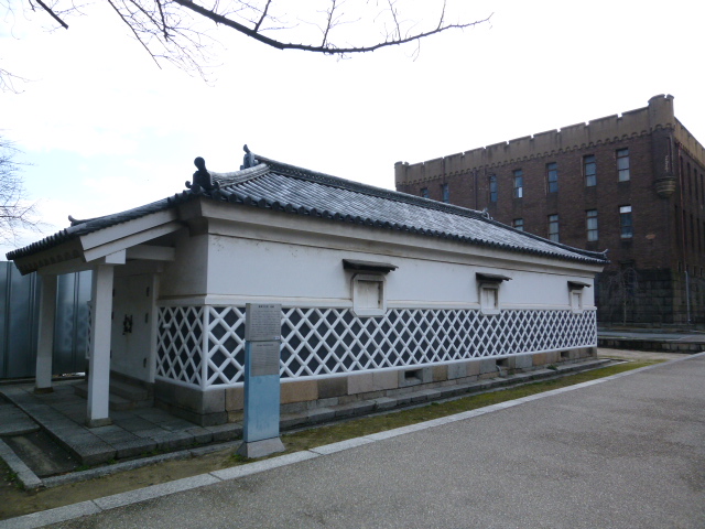 大阪城天守閣への入口右のトイレの奥にあります。トイレの奥なので行きにくいのか、人は少なく見かける人はトイレに並んでいる人だけです。お金の保管庫だったようです。重要文化財にしていされているようですが、あまり人気なさそうです。しかし、定期的に特別公開があるようです。内部は財宝などがある? 時期をみて見学してくださいね。
