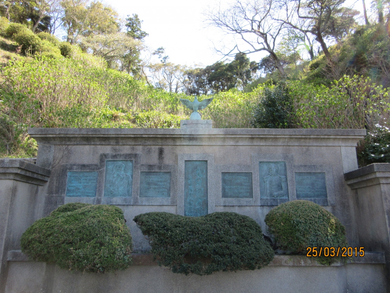 ペリーロードを抜けてから海沿いに【ペリー上陸の碑】を通り、暫くしてゆるい坂を上ります。途中【ジミーカーター前米大統領の碑】⇒【ペリーとハリスの胸像と言葉が刻まれた開国記念碑】を見学して、馬場ケ崎展望台⇒下田城跡に出ます。