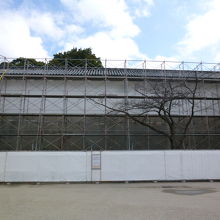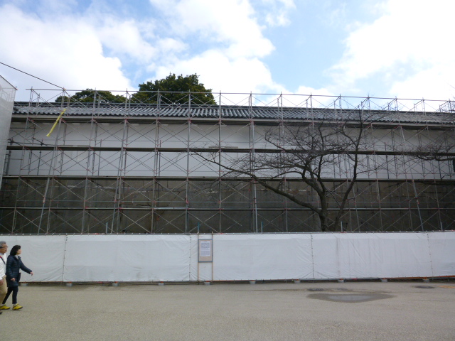 大坂城の正面玄関である大手門にきました。「大手見付石」は、ここ大手門の奥に見える大きい石のことですが、現在は工事中で全く見れませんでした。「大手見付石」見学はできず残念ですが、奥へ入ると西の丸庭から本丸へと続きます。濠と石垣、その上に建つ櫓も大阪城を盛り上げています。さぁー散策し天守閣へと行きましょう。
