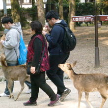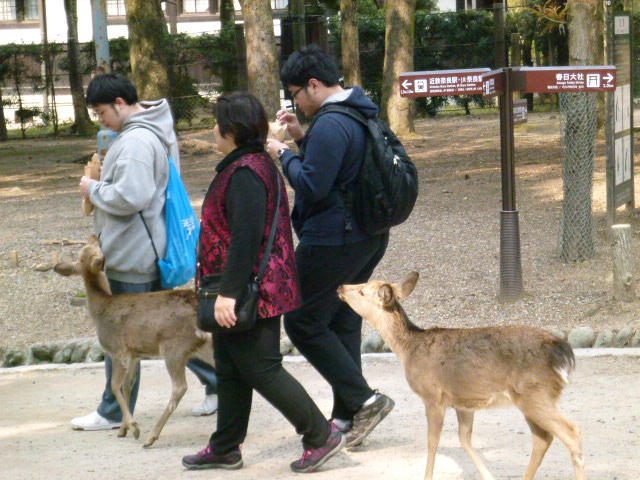 久しぶりに奈良公園に来ました。あらら、この辺一帯はどこへいっても鹿でいっぱい、どこから出て来るのでしょうか。調べたら1500頭ぐらいらしいてす。「ウンチ」もいっぱいです。鹿せんべいを販売していますが、人のお菓子が好物のようです。見せると必ず寄ってきます。私にとっては異様です。黙って食べ物持たずに散策です。