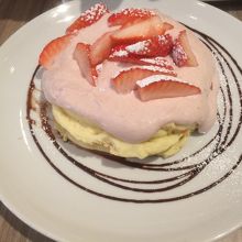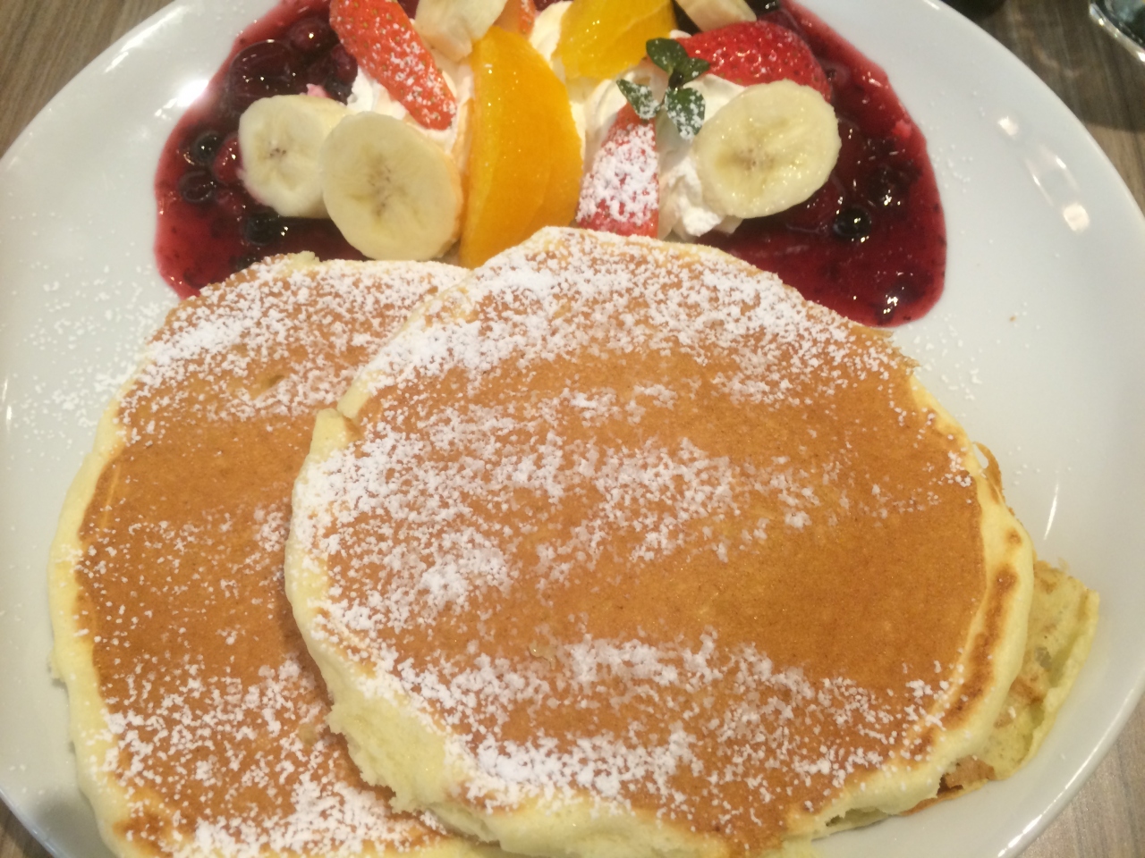 生クリームたっぷりのパンケーキも生クリームが甘すぎないので、すごく食べやすいと思いました。