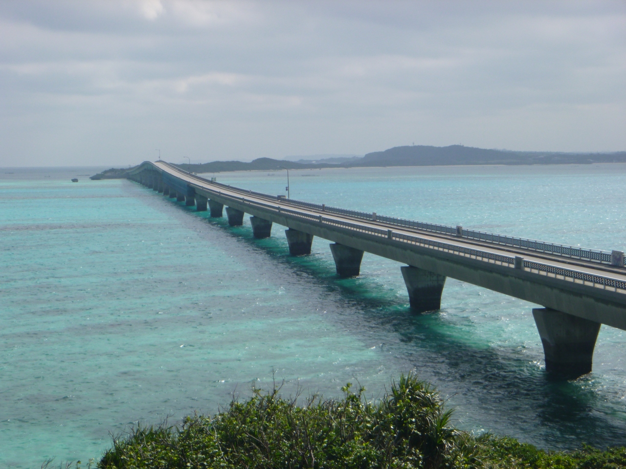 池間大橋からの眺望はすばらしい。右と左では違うし陽の差し方によってもちがう。海の色も珊瑚や深度によってグラデーションがすごいです、ぜひ夏場にもう一度行ってみたいと思いました。船が通るため珊瑚が削ってあるのかな?